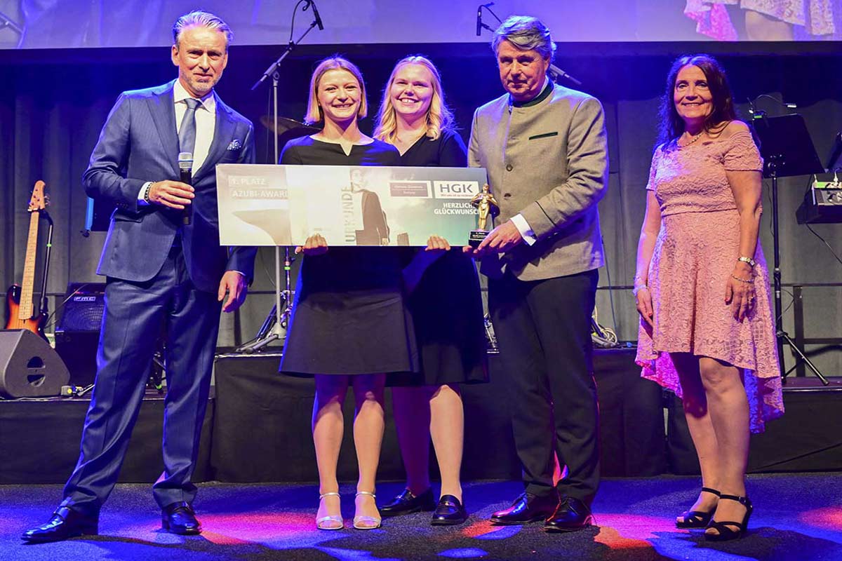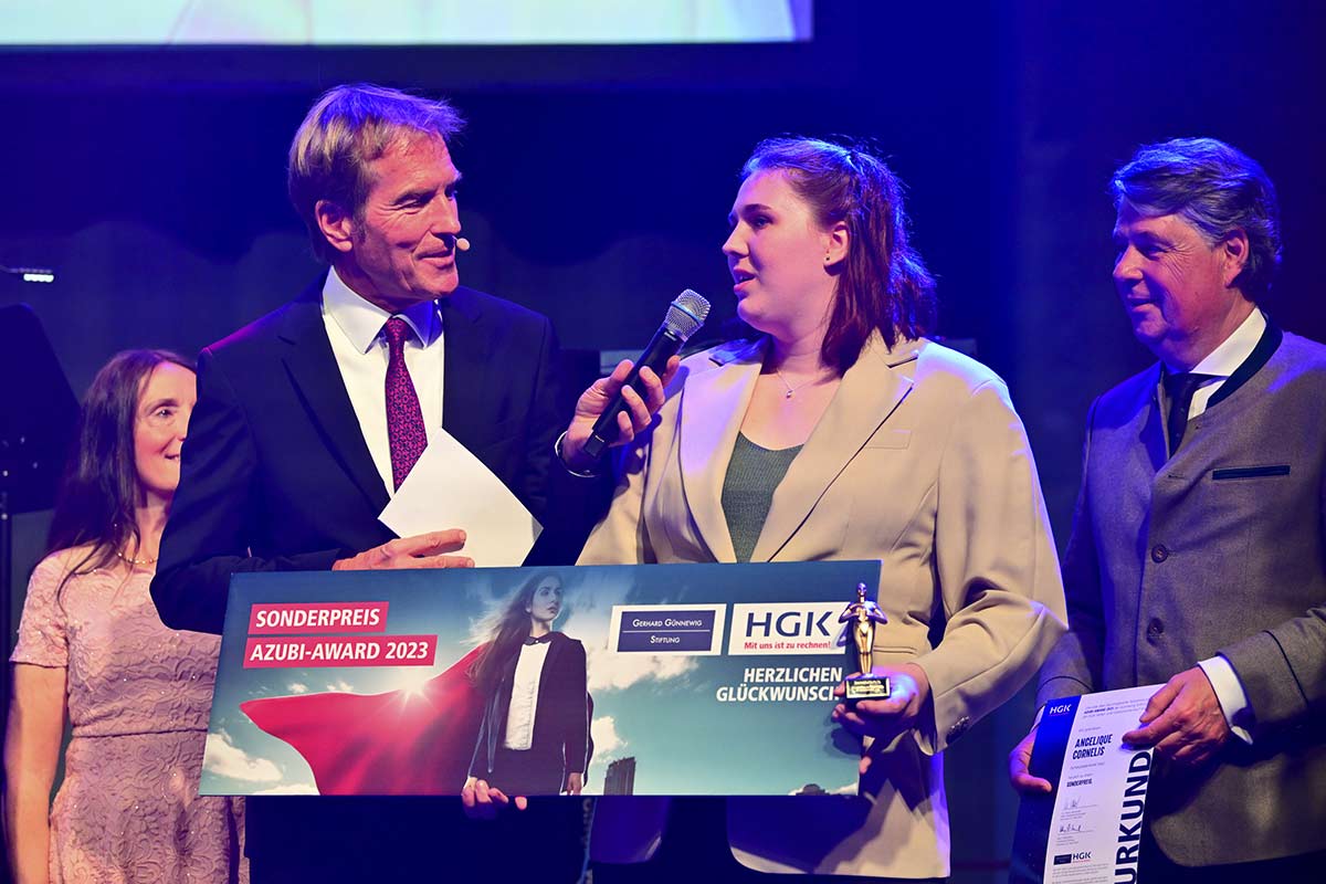 v.l.: Dagmar Becker-Tewes (Geschäftsführung der Gerhard Günnewig Stiftung), Klaus Hübenthal, (Vorstandsvorsitzender Gerhard Günnewig Stiftung), Désirée Steinheuer und der Auszubildende Felix Abraham von Steinheuers Restaurant "Zur Alten Post", Gereon Haumann (Präsident DEHOGA Rheinland-Pfalz), Ingrid Holterhoff (Fachbereichsleitung Gastronomie BBS Ahrweiler), Daniel Schlich (Vorsitzender des BBS Fördervereins) und Studiendirektor Hermann Freund (Schulleitung BBS) Foto: BBS Ahrweiler